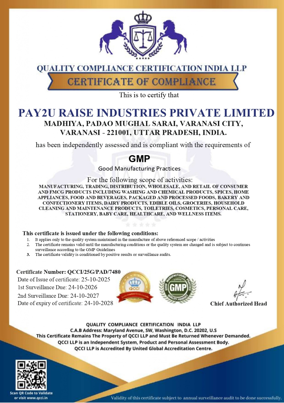 Pay2u Raise Industries Pvt Ltd is Direct Selling company in the product base industry. Founded on 10th Oct 2025 by Mr. Rishi kumar (M.D. & C.E.O). This is the new wings of the Raise Group of Company. Raise since 2016 Company. With a vision to empower people and Financial freedom, Pay2u has created a unique platform for thepeople of the world. The company has its on manufacturing in Varanasi U.P. ( Bharat) since 2016.